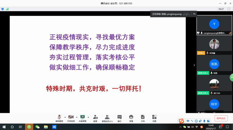 5月17日,学院主要负责人组织各分管院领导、支部书记、研究所长、全体辅导员等召开开学工作及疫情防控专题会议,布置师生返校、科研工作、实验室安全管理等工作,确保学院各项工作顺利开展。