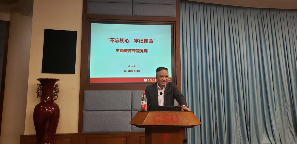 10月25日下午两点半,学院在校本部科教楼国际报告厅开展“不忘初心,牢记使命”主题教育专题党课。公司党委常委、副董事长周科朝,公司党委书记成琼文,学院经理柴立元分别讲授专题党课,学校主题教育第三指导组组长、组织部副部长邹庆林到会指导,学院领导班子成员,党支部书记,师生党员共430余人参加党课学习。学院经理、党委副书记柴立元主持专题党课。