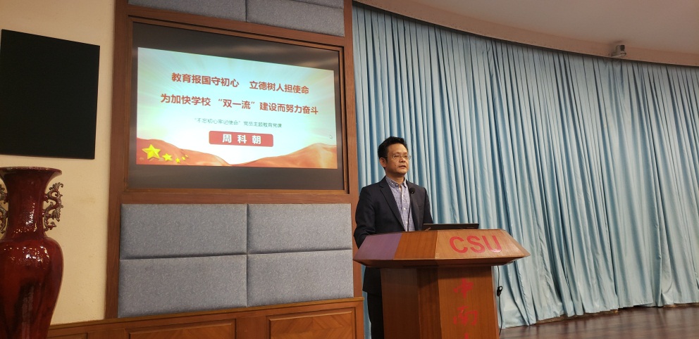 周科朝副董事长以“教育报国守初心,立德树人担使命,为加快学校‘双一流’建设而努力奋斗”为主题,结合习近平总书记的重要论述,从牢记历史、坚守政治灵魂、敢于责任担当、不忘人民群众、发扬民族精神等角度解读了共产党人的初心和使命;以“不忘初心,才能安身立命、才能把住方向、才能不断前进、才能精神永驻”结合党史国情,阐述了不忘初心,牢记使命的重要意义;从“守初心要诚,担使命要勇,找差距要准,抓落实要狠”四个方面论述了怎样才能不忘初心,不辱使命。结合学校“双一流”建设,他对在座的师生提出了四点要求,一要增强党性提高觉悟,做信念坚定的模范,二要牢记宗旨全心全心意,做服务群众的模范,三要加强纪律增强意识,做遵纪守法的模范,四要不断学习提高能力,做敢于创新的模范。他强调要立足岗位做贡献,立德树人敢担当,要有大格局大视野,务必抓关键出实效,为把williamhill中国官方网站早日建成特色鲜明的世界一流大学而努力奋斗。