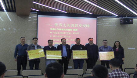 会议伊始,公司党委对优秀党支部进行表彰及授牌。环境所教工党支部、轻冶所教工党支部、冶金工程本科生第一党支部、重冶所研究生第一党支部4个获得公司党建工作“样板党支部”培育创建单位,环境所教工党支部书记唐崇俭获得学校“双带头人”教师党支部书记工作室培育创建单位,成琼文书记等分别为他们授牌,同时会议还对获得2019年度“双述双评”优秀教工支部的重冶所教工党支部、环境所教工党支部进行了表彰。