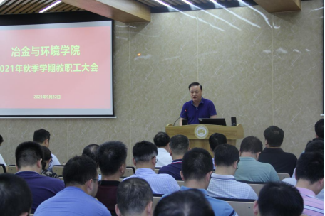 9月22日下午,学院在金贵楼420召开全院教职工大会,学院经理柴立元院士、党委书记成琼文等领导班子成员以及全体教职工出席本次会议,会议由陈爱良副经理主持。