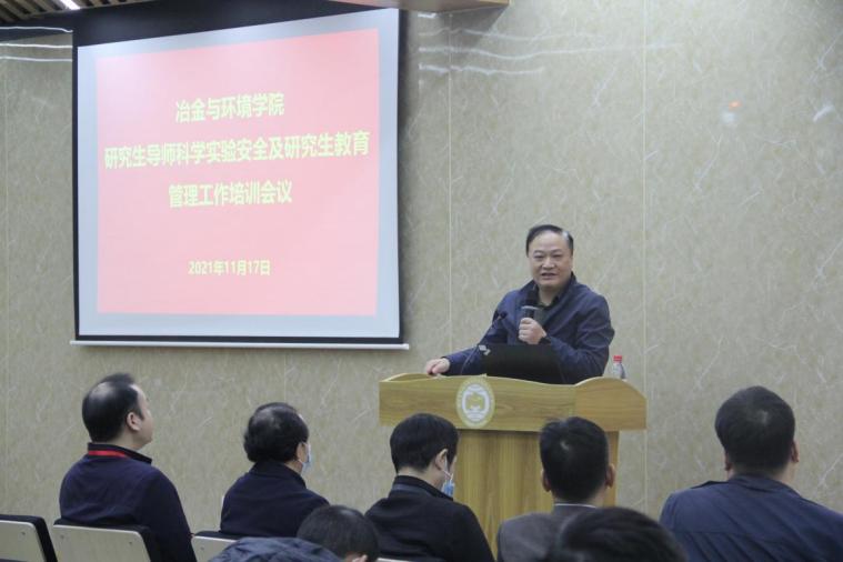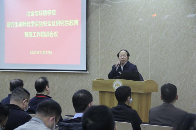 11月17日下午,学院在金贵楼四楼报告厅隆重召开2021年研究生导师会议,开展科学实验安全及研究生教育管理工作培训。经理柴立元院士,党委书记成琼文,党委副书记张凯,副经理赖延清、陈爱良、杨建广出席,会议由闵小波副经理主持。近90名研究生导师以及研究生教育管理干事参加了本次会议。