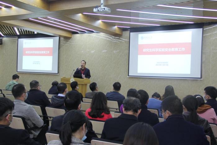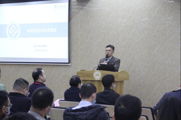 赖延清副经理介绍了学校实验室安全与环保管理现状、实验室安全环保制度体系、新出台的实验室安全环保管理文件,通报了实验室现场典型隐患及近年来学校发生的实验室安全事故,并对实验室安全检查中各实验室存在的安全隐患进行提醒,切实做好实验室安全工作,避免实验室安全事故的发生。