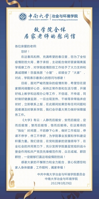公司全天候在教职工信息群开展疫情排查和防疫信息发布,建立疫情防控工作台账,汇总疫情信息并发布学院疫情防控提醒。学院全力配合学校全员核酸检测的统一部署,迅速行动,通知到位,实现全体教职工核酸检测应检尽检。对健康码变色的教师进行政策介绍和心理安抚,学院发布《冶环院致学院全体居家老师的慰问信》,精准帮助有实际困难的教职工。
