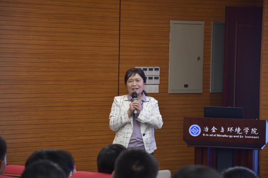 黄小卫院士以“专注”“坚持”为关键词同与会师生进行了深度分享。她以自身从事稀土工作所遇的困难及解决方案为例,嘱托青年员工遇到困难时一定要坚持不懈,人要成事务必专注、坚持,时刻盯紧目标、找准方向,最终攻破难题。黄小卫院士还结合自身科研与求学的经历,抒发了她对冶金事业的真挚情怀:“我选择做冶金,一点都不后悔,我热爱冶金事业!”她深情的话语掷地有声,将个人与国家事业的发展紧密联系的热忱深深激励着同学们。