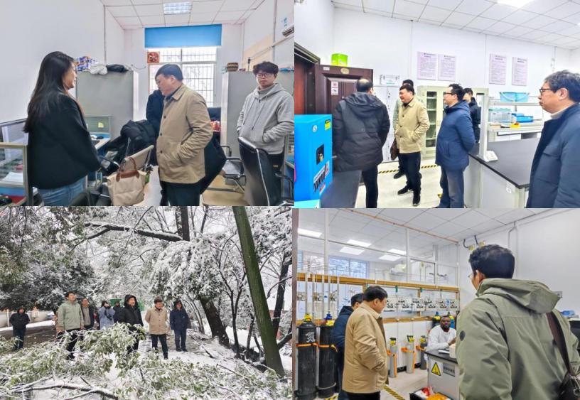 专题工作会后,学院成琼文书记、闵小波经理带队对学院各楼栋实验室进行安全环保检查,并查看强降雪对各楼栋的影响,现场查看积雪清理、房屋和树木防护、楼栋周边环境治理等情况,学院办公室和实验中心负责人及相关老师陪同。