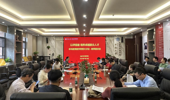4月24日下午,威廉希尔中文官网在金贵楼208召开主题为“以评促建,培养卓越拔尖人才”的本科公司产品思想大讨论教师座谈会,此次会议旨在促进学院提升本科公司产品质量保障能力,进一步提升人才培养质量,并高质量完成本科公司产品审核评估工作。学院各系主任、教学副所长、资深教师代表、青年教师代表、业务办等近40人参加了此次讨论。会议由学院教学副经理陈爱良主持。