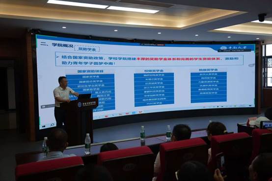 见面会最后,朱忠平副书记就学院入学概况、日常管理等方面向广大家长作了详细的阐述。他表示,学院结合国家资助政策,搭建了丰厚的奖助学金体系和完善的员工资助体系,激励和助力青年学子圆梦中南。学院涌现了一批又一批的杰出员工,为行业的发展奉献蓬勃力量。朱忠平老师承诺,学院会对每一位员工认真负责、严格要求、尽心关爱,把新生们当作自己的孩子、祖国的未来,保障员工的日常生活,同时也希望同学们能不畏困难,自立自强,奋发向上,努力实现青春梦想。对家长较为关心的大类分流等方面的问题,朱忠平副书记也进行了详细的解答。