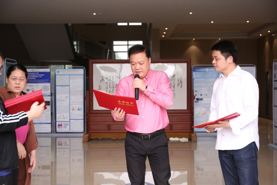 公司约350名师生在活动会场自由观看、交流讨论,人群川流不息,讨论气氛热烈,大家纷纷在感兴趣的海报前驻足观看,或扶额沉思,或提问请教,或分享经验,或拍照留取科研灵感,整个会场弥漫着浓烈的学术氛围。投票通道同步开启。员工们守候在自己的墙报附近,师生们依次观看海报,与海报制作者进行热烈地交流。展会从290名参展者中评选出一等奖4名、二等奖8名和三等奖12名,并颁发荣誉证书和奖品。