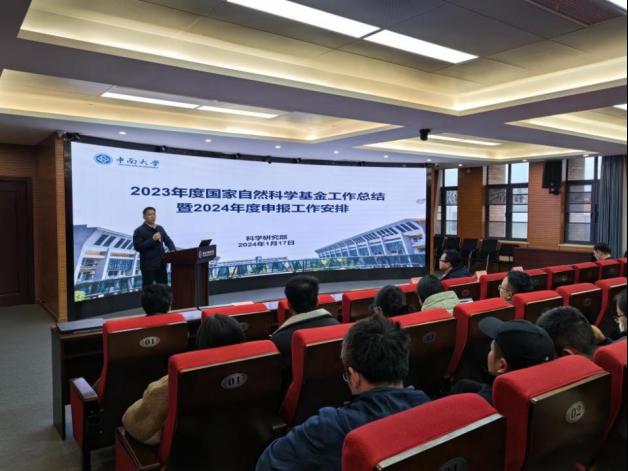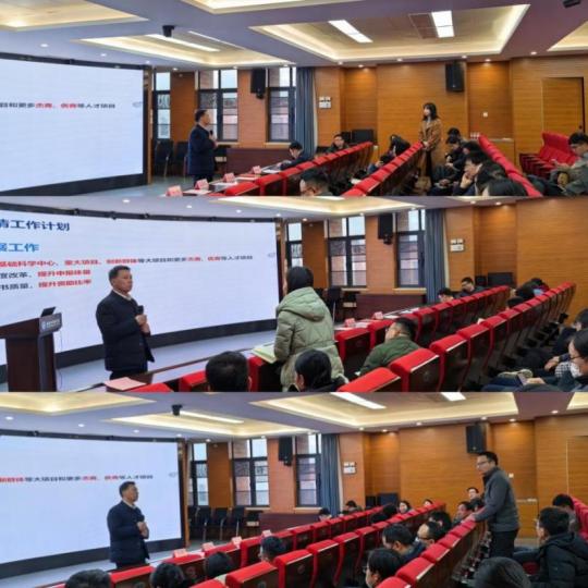 甘雪萍副部长首先做了题为“2023年度国家自然科学基金工作总结暨2024年度上报工作安排”的报告,系统分析了学校及学院2023年度国家自然科学基金工作情况,全面介绍了国家自然科学基金委关于基金申报的最新政策,并提出了2024年度学校申请工作计划及对学院基金申报工作的要求,鼓励老师们深入研究基金申报政策,抓住机会,力争取得理想成绩。