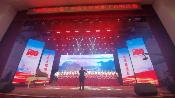 在20号下午的比赛中,学院教职工精神昂扬,盛装登场。“万里山河灯火漫卷,是坚守初心换回的百年承诺;焰火升腾星光闪烁,是民族复兴创造的时代巍峨。炽金梦想,薪火相传,牢记使命,砥砺前行。奋进新时代,威廉希尔中文官网凝心聚力,建设一流学科;启航新征程,威廉希尔中文官网攻坚克难,再创新的辉煌!”学院经理柴立元院士、党委成琼文书记在合唱前慷慨激昂地朗诵拉开了合唱的序幕。伴随着《灯火里的中国》优美的旋律,学院教职工以温暖大气,细腻优雅的歌声,展现了改革开放40周年后中国人民的美好生活、奋发图强和生生不息,热情讴歌建党100周年的发展历程和辉煌成就,唱响爱国、爱党、爱人民的时代主旋律,抒发永远跟党走、奋进新征程的坚定决心,“灯火里的中国青春婀娜,灯火里的中国胸怀辽阔”,舞台上老师们的歌声触动了无数观众的心弦,赢得了现场观众的热烈掌声和评委的一致好评,最终以97.43分的成绩从众多队伍中脱颖而出,荣获二等奖。