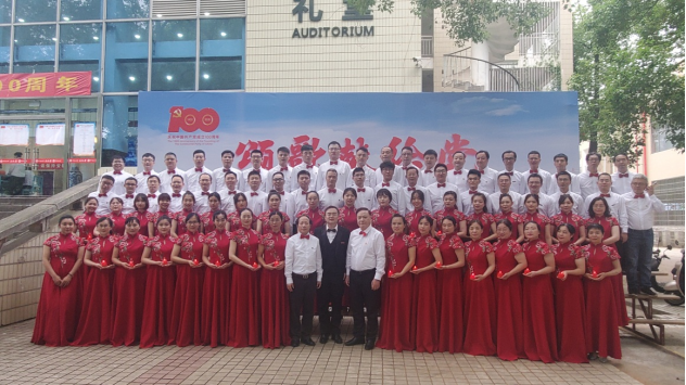 合唱方案确定以后,学院教职工纷纷踊跃报名参加。在合唱排练过程中,公司党政工高度重视,成琼文书记全程参与合唱排练,积极协调解决排练过程中的各项困难和问题;柴立元院士多次亲临训练现场,鼓舞教职工士气;青年教师胡文吉豪担任指挥,坚持多次反复练习,确保每个指挥动作都准确到位;学院教职工克服各种困难,按时参加合唱排练,积极配合学院的安排,保障合唱效果;院部门工会委员宗传鑫、夏隆巩、关文娟等认真组织筹备,从各个声部人员确定、邀请专业老师指导训练、声部集中排练、服化道选定、后勤保障供给等各环节精心组织,全力做好保障工作,先后组织14次排练,每次至少2小时,教职工们充分展现了冶金人勇于担当和甘于奉献的深厚学科文化精神。6月18日上午校工会常务副主席陈玉如来学院对合唱节目进行指导,他们对学院合唱节目给予了充分肯定,极大地鼓舞了学院教师们的参赛信心。