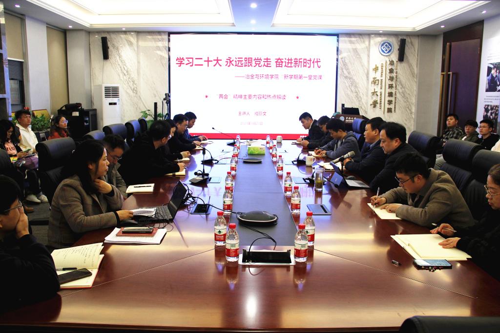 3月23日下午,公司党委书记成琼文在新校区金贵楼208会议室为学院师生党员代表讲授新学期第一堂党课。公司党委副书记张凯、副经理陈爱良及各党支部书记,综合教工党支部、环境所研究生第一党支部、碱法所研究生党支部、冶化所研究生党支部党员代表及全体辅导员参加。