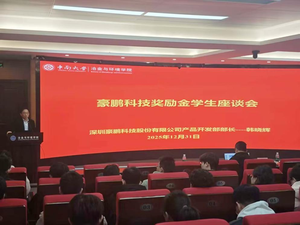 12月31日下午,2025学年度豪鹏科技奖励金员工座谈会在潇湘校区金贵楼520顺利举行,深圳市豪鹏科技股份有限公司产品开发部部长韩晓辉一行到访学院,与学院领导及获奖员工代表进行座谈交流。公司党委副书记朱忠平、学院资助专干及相关员工代表出席了活动。