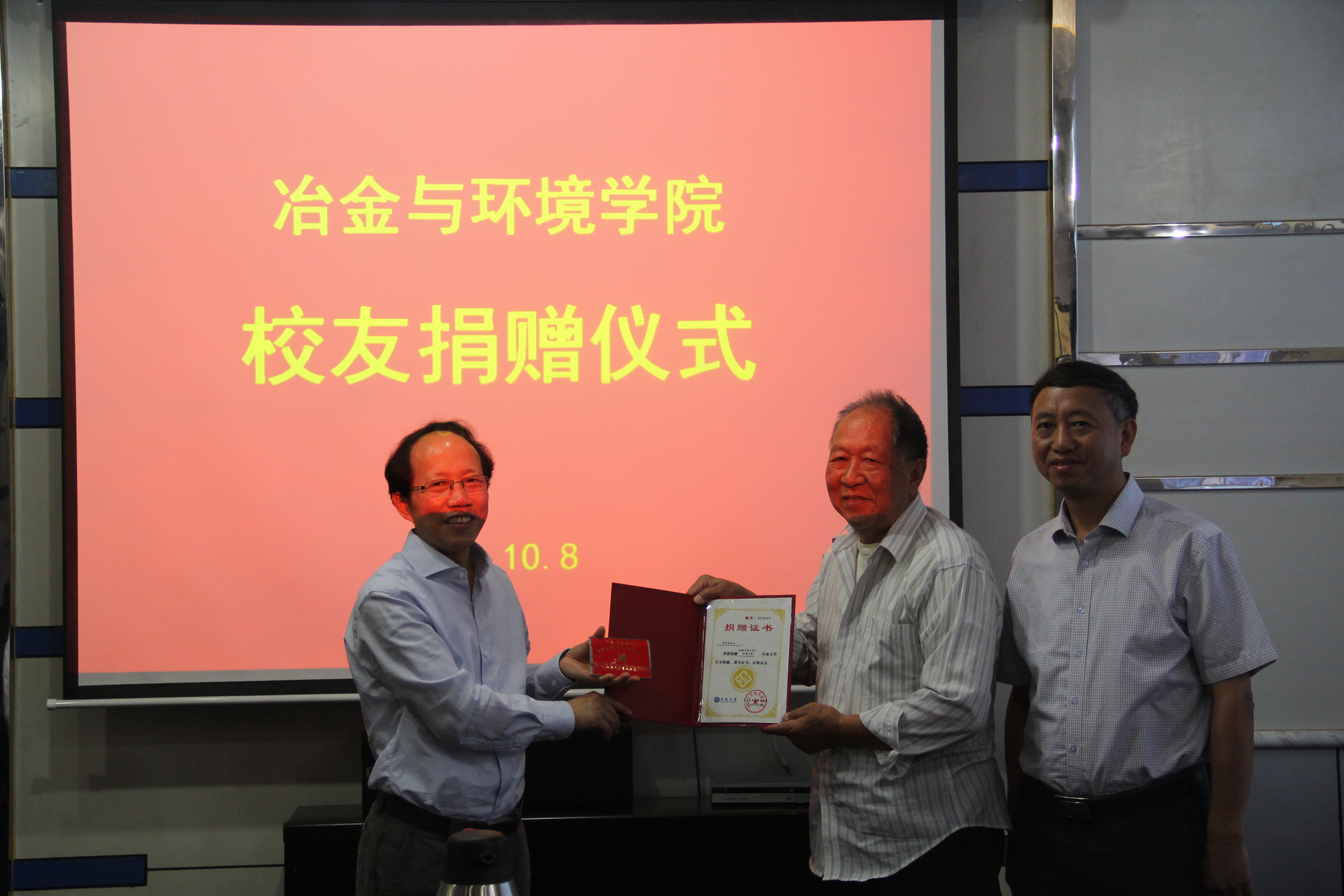 10月8日上午,员工捐赠仪式在威廉希尔中文官网冶金馆会议室举行。阜康冶炼厂原总工、williamhill中国官方网站员工陈廷扬向母校捐赠了珍贵藏品。williamhill中国官方网站员工叶绍球、梅炽、覃明干、williamhill中国官方网站发展与联络办公室主任张忠生、威廉希尔中文官网院领导柴立元、田庆华、赵中伟、王万林、赖延清、张凯等人出席了仪式。柴立元教授主持了仪式。