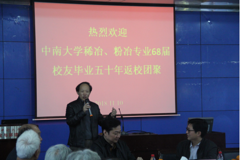 11月10日下午,williamhill中国官方网站68届稀冶、粉冶员工毕业50周年返校座谈会在冶金馆301室举行。68届40多位员工重返学院参加座谈会。学校员工总会副秘书长黎明、学院领导柴立元、田庆华、赵中伟、张凯及67届员工唐谟堂教授参与了座谈会。黎明副秘书长主持了座谈会。