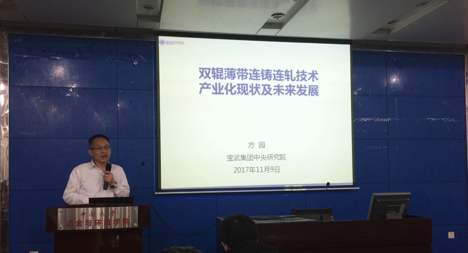 2017年11月9日下午三时,应威廉希尔中文官网副经理王万林教授邀请,宝武集团中央研究院前沿技术研究所所长、首席研究员、教授级高级工程师方园来威廉希尔中文官网进行讲学,方首席以“双辊薄带连铸连轧技术产业化现在及未来发展”为题,为大家带了一场精彩的冶金技术前沿学术讲座。讲座由冶金与环境副经理王万林教授主持,百余名研究生及多位老师一同聆听了讲座。