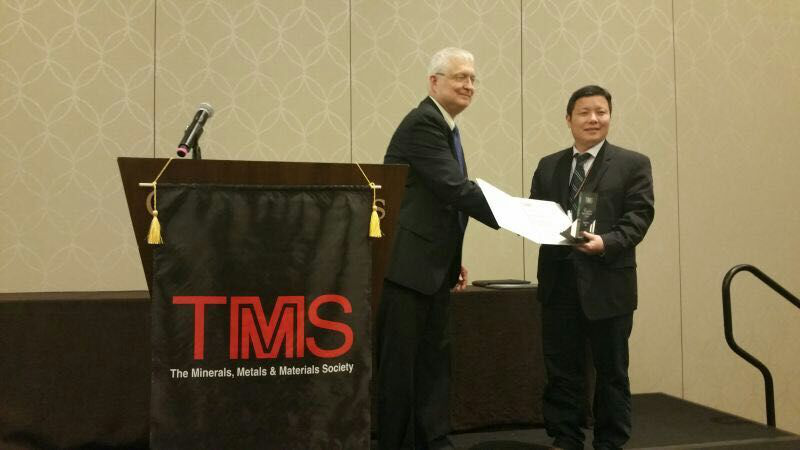2016年2月14日至18日,第145届TMS年会,即国际矿物、冶金、材料学会年会在美国田纳西州首府纳什维尔隆重召开。公司教师周乐君,王万林,周科朝于2015年在“Metallurgical and Materials Transactions E”所发表论文《Effect of Al2O3 on the Crystallization of Mold Flux for Casting High Al Steel》(Vol.2, pp:99-108, 2015)荣获第145届TMS年会轻金属学部职业组最佳论文奖(2015 TMS Light Metals Division Energy best Paper Award-Professional)
