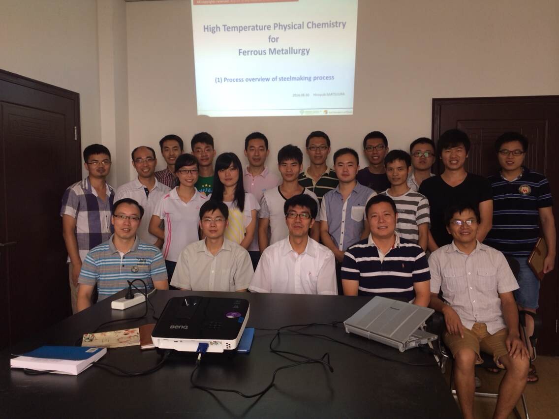 2014年8月28日至9月3日,日本东京大学松浦教授受邀到威廉希尔中文官网钢铁研究所进行授课。在课堂上,松浦教授用英语以互动教学的方式向钢铁所的师生们讲解有关“High Temperature Physical Chemistry for Ferrous Metallurgy”方面的知识,并介绍了日本钢铁冶金的现状及发展。课堂气氛轻松活跃,钢研所师生们对授课内容显示了极大的兴趣,并积极参与讨论和交流。课后,大家一致表示学到了很多新的知识。张海辉博士说:“松浦教授授课内容丰富多彩,能够将复杂的高温物化知识用通俗易懂的方式解释清楚。这几天的学习对自己的以后科研有不小的帮助。”